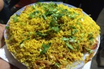 Puffed rice with potatoes, onions, green chilies, wheat crisps, tossed with a tamarind-date sweet chutney and spicy cilantro-mint chutney.