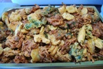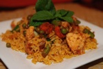Seasoned rice cooked in broth and spices layered with spiced mixed Vegetables and garnished with fresh mint and sautéed onions.