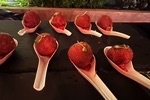 Puffed wheat crisps, stuffed with spiced potato and garbanzo beans. Served with spiced cilantro-mint flavored water.