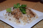 Seasoned rice cooked in broth and spices layered with succulently spiced Goat and garnished with fresh mint and sautéed onions.