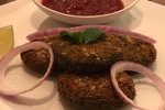 Minced chicken or lamb seasoned with spcies and garbanzo beans molded into a patty, served with cilantro-mint chutney