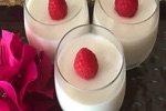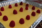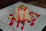 Refreshing Mango, youurt creme based dessert topped with raspberies. Very popular.